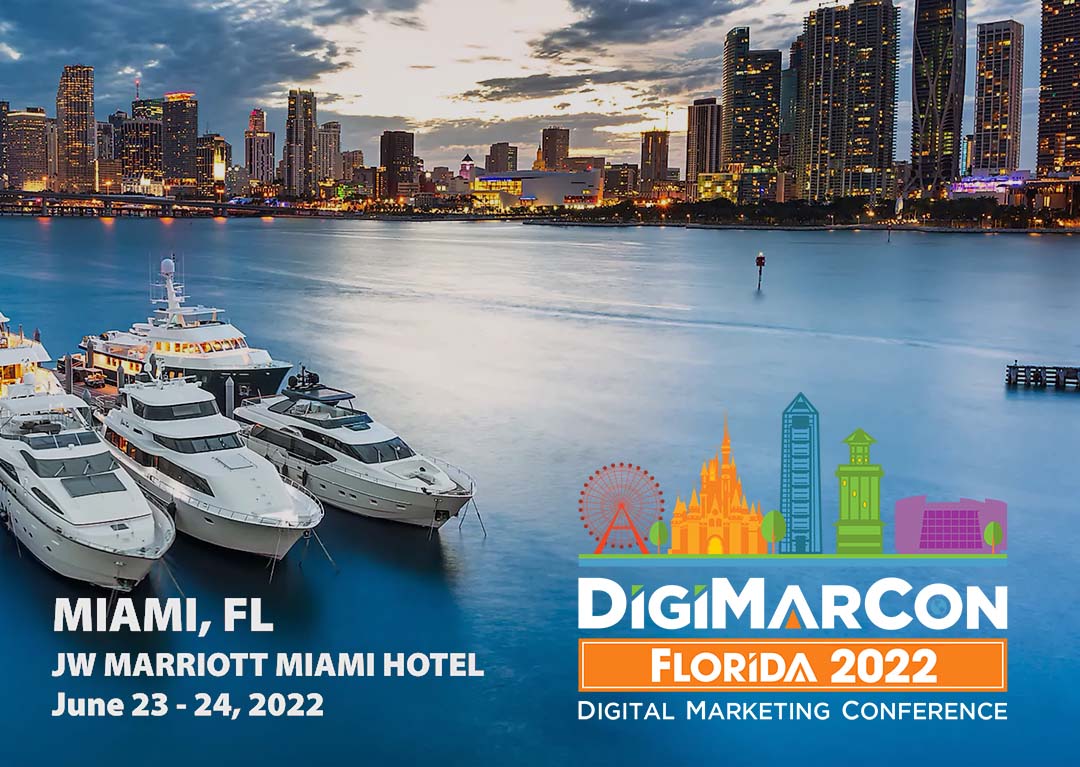 Join us at DigiMarCon Florida in Miami. DigiMarCon Florida, the Premier Digital Marketing, Media and Advertising Conference & Exhibition in Florida returns June 23rd to 24th, 2022 to the luxurious JW Marriott Miami Hotel in Miami, Florida. Join your peers in-person or online for 2 days jam packed with digital marketing best practices, latest trends, practical solutions, strategy and networking, also check out the next generation of technology & innovation; Internet, Mobile, AdTech, MarTech & SaaS Technology.